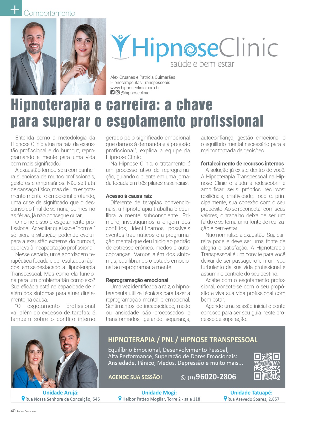 Acabe com o esgotamento e reconecte-se com seu propósito. A Hipnose Clinic está pronta para ser sua guia neste processo de superação.
